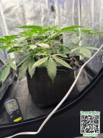 Климат в тенте: ~24–25°С, влажность около 40%. Думаю чуть поднять RH — поставлю ёмкость с водой. CO₂ мешок висит под лампой, клип-фан даёт лёгкий шевел листвы, без урагана.