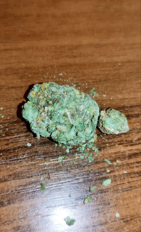 В двух зипах обмотанных изолентой меня ждал целый грамм сухой, отлично пролеченной бошечки. Прес есть, но не страшный, а, как говорит один мой друг, транспортировочный. В гриндере перемалывается легко. Много, очень много трихом. За примером можно опять же выше фото посмотреть.