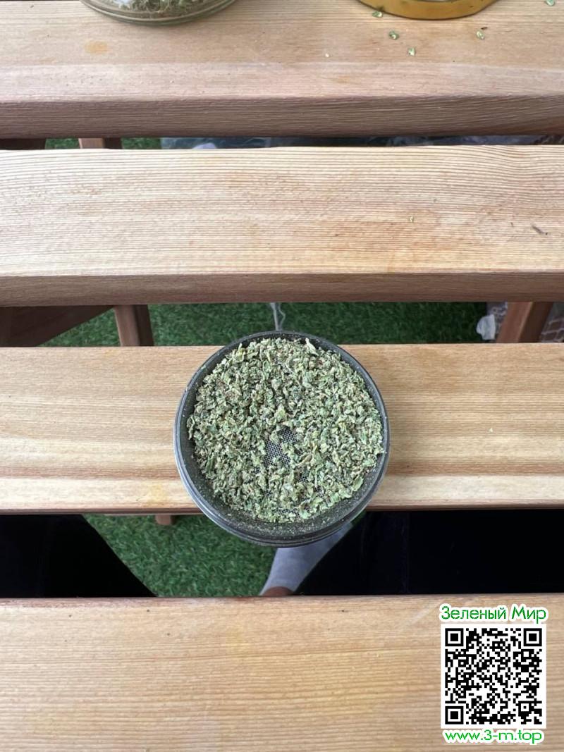 Шишка представляла собой мелкие рассыпчатые шарики, с мощным характерным запахом, светло зелёного цвета, вся блестела в трихомах. Гриндер отлично справляется с растительной массой, перемешивая и измельчая до однородного состояния.