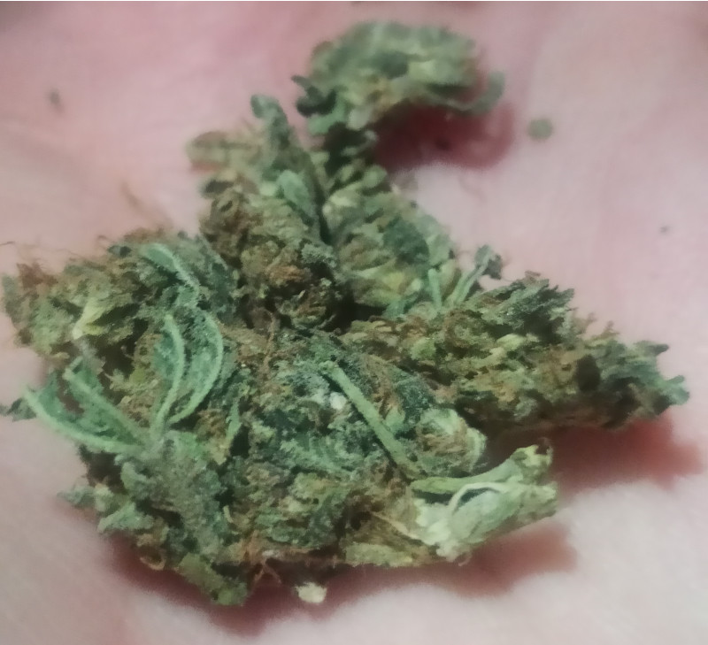 Шишки пресс, но не каменный, довольно терпимый. Полностью сухая. После гриндера получалась объемная, пушистая кучка. Забил примерно 0.2 в сухой, курится легко и без кашля. Присутствует земельный привкус, очень приятный, особенно в сравнении с тяжёлым гашишным дымом. Накур пришел спустя 5 минут, плавный и спокойный. Ощущается сатива, это