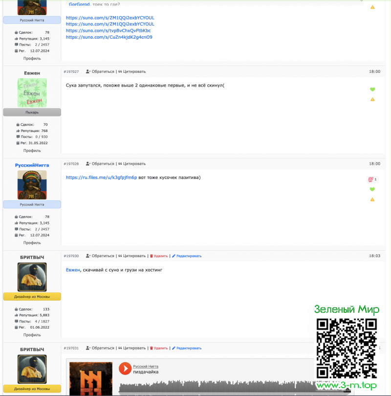 GorGorod, я загружал все по очереди. сначала тот что скинул инвентор ссылкой на хостинг, спросил у тебя где трек евжена и следом ниггин с пиздачайкой)