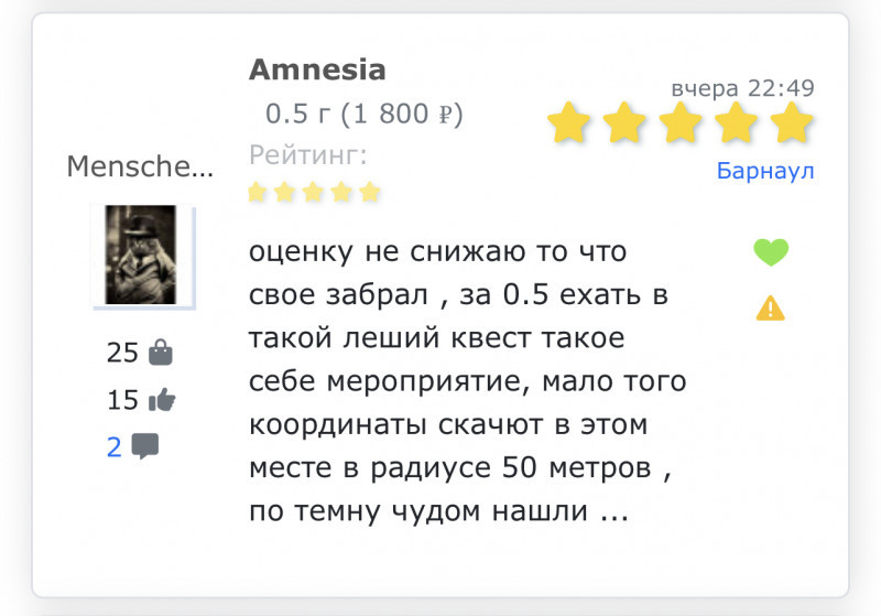 оценку не снижаю, ведь я сам купил 0.5 в алтайке и поехал туда с барнаула 😁 кажется так в отзыве должно быть написано