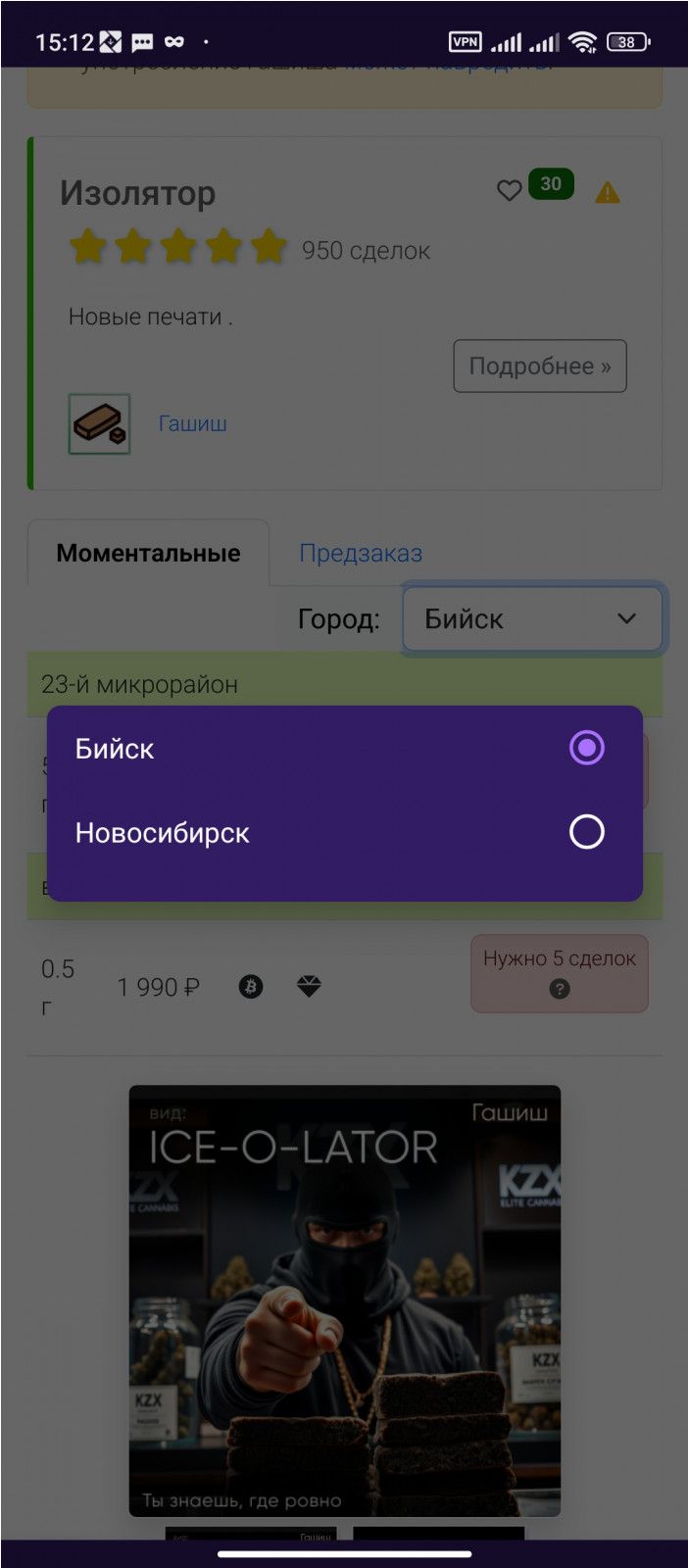 Кстати, момент. Там ведь товар указан в Краснообске, но там это как район указан, когда я выбрал Краснообск в графе города, по кладам ничего не найдено, а они есть.