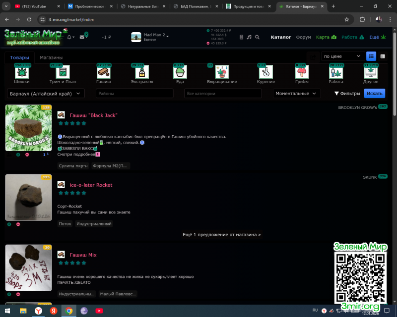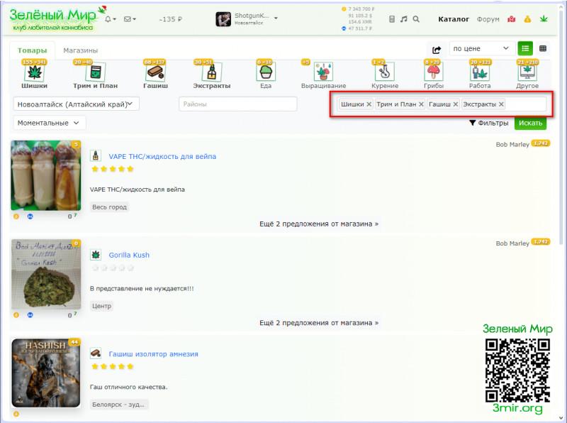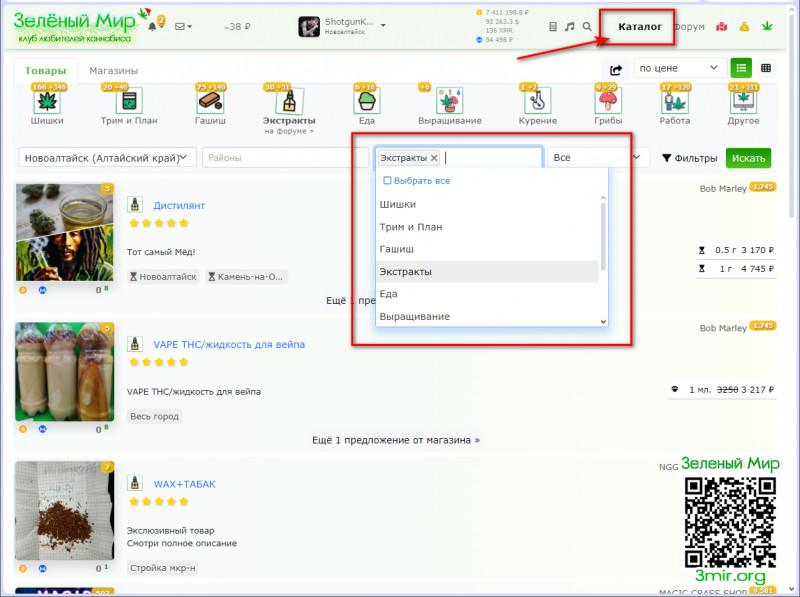 Нажимаю категорию Шишки,открывается Каталог.