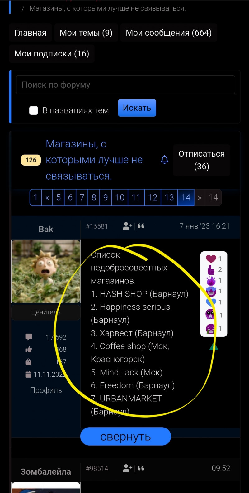 Список недобросовестных магазинов.
